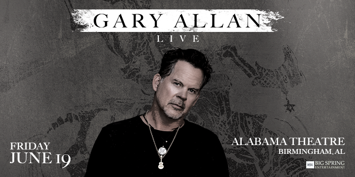 Back to All Events Gary Allan Friday, June 19, 2026 7:00 PM 9:00 PM Alabama Theatre Birmingham, AL (map) Google Calendar ICS Tickets >